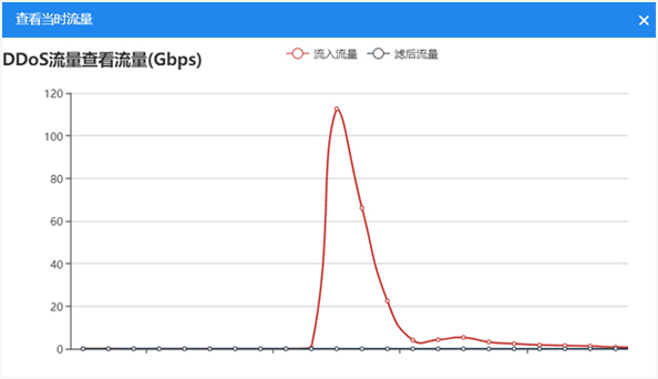 防御能力200G,攻击峰值112.66 Gbps,自动防护成功。攻击峰值小于防护值,系统自动防护,添加攻击事件。