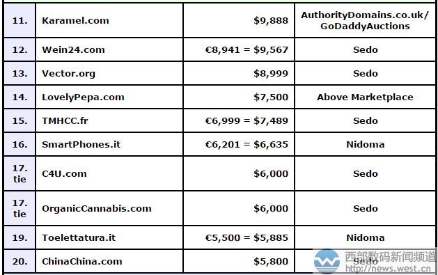 DN榜:两数字域名20.com千万元夺冠!两杂域名J5.COM卖出六位数!三五互联(35.com)4月20日消息,本期的DN交易榜(4.10-4.16)上,短字符域名表现不错,排名前三的均是两字符域名。其中,数字域名20.com以1,750,000美元的成交价夺得第一,约合人民币1205万元。 域名20.com注册于1995年11月,距今已经22年历史。作为整十2数字,全球仅有10个,资源稀缺,域名品相自然不必多说。同时数字域名全球通用,建站限制小,尤其适合搭建金融、游戏、菠菜等类型终端平台。据了解,这个域名由海外知名创业者和天使投资人Jason Calacanis在2006年以7.5万美元买入,今年则以175万美元的价格售出,这也是今年目前为止DN交易榜排名第二的域名,仅此于01.com。 紧随其后的是两杂域名j5.COM,由Sharjil Saleem中介售出,成交价为115,000美元,约合人民币79万元。域名j5.COM注册于1997年6月,距今刚好20年,记忆输写优势相当突出,而且含义上,j5可代表“街舞、接物、景物、家务、吉屋、酒屋”等词语,适合搭建舞蹈、电商、旅游、房产等网站平台。 同样经由Sharjil Saleem中介的还有16.net,成交价为60,000美元,约合人民币41万元,这也是本期DN交易榜的第三名。据了解,此前,Sharjil Saleem还中介了“帝吧”d8.com、“物流”w6.com、,甚至连不久前近280万元易主的“资产”域名asset.com(近280万元),也是他中介的,还有0123.com、7200.com、Shelly.com等域名…… 随后是两个意大利域名sos.it和launch.it,前者代表“呼救信号”,后者则有“发动、发射、开始”等中文含义,其结拍价分别是22363美元、17122美元。此外,“智能手机”SmartPhones.it、“美容”Toelettatura.it也结拍了。 除此以外,“色彩街”域名colorstreet被化妆品终端以16,000美元收购,目前正在启用建站;杂米域名Porn4K.com因与成人网站沾边,也拍出了不错的价格。 本文转载自新闻资讯,原文链接:DN榜:两数字域名20.com千万元夺冠!两杂域名J5.COM卖出六位数!