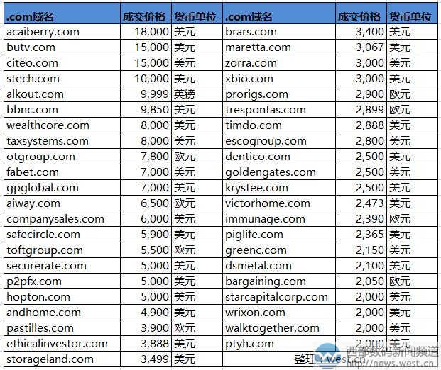 Sedo交易榜:“巴西莓”域名以12万元领衔!终端买了个五字母citeo.com三五互联(35.com)7月12日消息,最新一期的sedo交易榜出炉,本期上榜的域名共有56个,其中卖价最贵的是英文域名acaiberry.com,成交价为18,000美元,约合人民币12万元。 本期的.com域名中,五位数美元成交的域名只有5个。其中,排在第一的英文域名acaiberry.com是“巴西莓”的意思,学名“阿萨伊浆果”,是一个水果域名。这类域名比较适合搭建相应的水果销售网站。据了解,由于巴西莓在所有莓类里,是抗氧化功能最高的水果,经常被用在护肤方面,可作保养品。因此,Acai Berry及其相关产品风靡全球,域名acaiberry.com价值自然也不错。 排名第二的是以15,000美元结拍的四字母域名butv.com,约合人民币10万元。该域名注册于2000年,距今已有17年历史。作为CVCV型域名,BUTV.COM简单好记,而且本身是以字母“tv”结尾的,天然适合搭建视频、直播类终端,应用价值相当不错。 同样以10万元成交的还有五字母域名citeo.com,该域名表面上看并没有什么含义,但可作品牌缩写词,可搭建相应官网。据whois信息查询,域名citeo.com已被一家法国生物科技公司收购,官网域名为ecoemballages.fr。 紧随其后的是域名stech.com,成交价大概是人民币11万元的样子。在英文中有“硬塞、狼吞虎咽地吃”等含义,可搭建美食类终端。另外,据搜索发现,目前域名stech.com与深圳市南方鸿志科技有限公司(英文简称STECH)、卓锐高科控股有限公司(stech-group.com)等相对应。 本期国别域名交易情况也比较一般。成交价最高的是比利时域名kredietadvies.be,以5250欧元结拍。另外,域名three.co.kr和tv.by都拍了4000美元。其中,.co.kr是韩国本土域名,.by是白俄罗斯域名。 本文转载自新闻资讯,原文链接:Sedo交易榜:“巴西莓”域名以12万元领衔!终端买了个五字母citeo.com