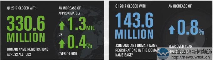威瑞信发布2017年一季度域名行业简报三五互联(35.com)7月19日消息,域名运营注册局威瑞信今天对外发布2017年第一季度域名注册量简报,报告称今年一季度所有国际顶级域名注册总量达3.306亿个,其中截至到2017年3月31日,新增注册量为130万个,同比增长3.7%,环比增长0.4%。 国别域名方面,截止到2017年第一季度末,注册总量为1.431亿个,环比增长03.%,同比增长1.7%。其中,中国国家域名.cn注册量突破2000万,达到2140万,是全球注册量最大的国别域名。紧随其后的是南太平洋岛国.tk域名,注册量为1860万。接着是德国国家域名.de以及英国国家域名.uk。 而两大主流域名.com和.net域名,截至到今年第一季度末,全球注册总量达1.436亿,同比去年增长0.8%。其中,.com域名增长迅速,截至到今年3月31日,.com域名的全球注册总量已达1.284亿。随后在今年6月份,.com域名更是首次突破1.29亿的全球注册量,成为全球注册量最庞大的后缀,将其他后缀狠狠甩在身后。.net域名方面,截至到一季度末,注册总量达到1520万。 截至到今年3月31日,新顶级域名全球注册量总量达2540万,占全球域名注册总量的7.7%。而排名前10的新顶级域名注册量又占全球新顶级域名注册总量的64.1%。其中,排名第一的是.xyz域名,占新顶级域名注册总量的22.1%,随后是.top域名,占全球新顶级域名注册总量的14.9%,.loan域名、.wang域名以及.win域名分别次之。 地区域名方面,截至到今年3月31日,共有37个地区域名,注册总量为564,542,占全球域名注册总量的0.9%。其中,.nyc域名是目前为止注册量最大的地区域名,随后是.london和berlin域名。 本文转载自新闻资讯,原文链接:威瑞信发布2017年一季度域名行业简报