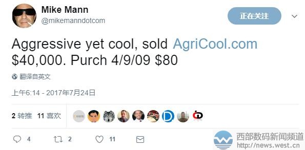 成本仅80美元!Mike Mann以27万元售出“农业”域名三五互联(35.com)7月25日消息,昨天国外大佬Mike Mann发推称,英文域名AgriCool.com以40,000美元成交,约合人民币27元。而这枚域名当时的成本仅为80美元,人民币539元。 域名AgriCool.com注册于2004年2月,2009年4月被Mike Mann收购。该域名主体中的“Agri”一词,既可看做agriculture(农业)的简写,也可视为aggressive(侵略性的,进取心),cool则是“冷却、酷”的意思。总的来说,域名AgriCool.com可以用于农业领域,对应有法国农业初创企业 Agricool;也可以搭建冷藏终端平台。 Mike Mann在域名销售以低买高卖见长,域名AgriCool.com也不例外。2009年收购价仅为80美元,如今身价倍增,达到了40,000美元,获益数百倍。 除了AgriCool.com以外,Mike Mann近日还出售了长字符英文域名theemeraldhotel.com,成交价为16,000美元,约合人民币10万元。该域名直译为“绿宝石/翡翠酒店”,非常适合酒店行业,目前对应有泰国绿宝石饭店。该域名在2012年8月由Mike Mann花7美元注册,时隔5年也是获益颇丰。 从以上两个域名的交易情况来看,虽然Mike Mann有着不凡的域名销售能力,但这两个域名的收购注册也都是发生在好几年前,如果不是有眼光有毅力,这两个域名恐怕也是熬不到五位数身价的。 本文转载自新闻资讯,原文链接:成本仅80美元!Mike Mann以27万元售出“农业”域名