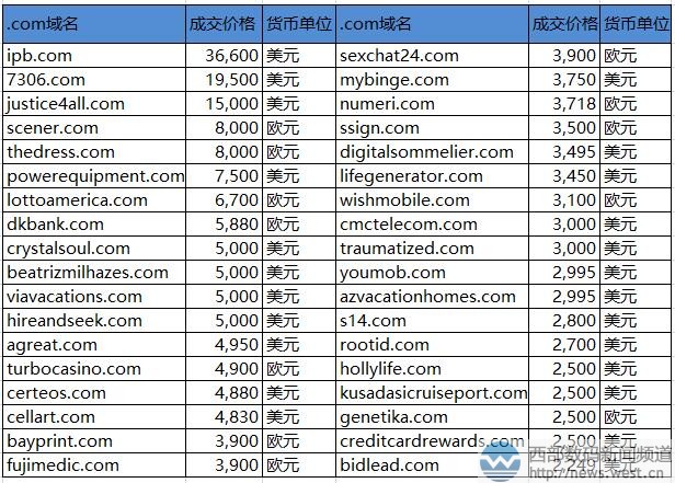 三字母ipb.com六位数领跑Sedo榜!数字域名7306.com紧随其后三五互联(35.com)8月23日消息,最新一期的sedo交易榜出炉,本期上榜的域名共有57个,其中卖价最贵的是三字母域名ipb.com,成交价为36,000美元,约合人民币24万元。 本期的.com域名中,五位数美元成交的域名只有5个。其中,排在第一的域名ipb.com早在7月底就曝出交易消息。该域名注册于1995年9月,首字母“i”谐音“爱”,而字母“pb”对应有“跑步、排版、泡吧、聘宝、陪伴”等含义。所以组合在一起,域名ipb.com可广泛用于跑步软件、婚恋交友、娱乐休闲、以及招聘等诸多行业。 排名第二的是以19,500美元成交的数字域名7306.com,约合人民币13万元。该域名注册于2004年,虽然含有数字0,但字符简短好记,建站不受限制,可用来搭建金融、游戏、门户网站等。 紧随其后的是一枚组合域名justice4all.com,成交价为15,000美元,约合人民币10万元。该域名中的数字4英文发音与单词“for”相同,所以justice4all.com也就是“对所有人公正”的意思。适合搭建公益网站或者法律援助平台。 国别域名方面,两个德国域名表现出众,rechnung24.de和mitarbeiter.de分别以18,000欧元和11,000欧元结拍。其中,rechnung24.de虽是组合域名,但“rechnung”有“账单”的意思,24又对应有24小时,适合搭建财务票务类网站。域名mitarbeiter.de则表示“同事、职员、雇员”的意思,在德语里也是非常通用的词语。 其他域名中,format.net以10,000美元节拍,主体“format”有“版式、形式、安排”等意思,目前对应有福玛特自行车(formatbike.cn)。另外,新顶级域名cloud.market以9000欧元成交,该域名直接代表“云市场”,对应当前比较火热的云技术领域,可应用的空间较广。 本文转载自新闻资讯,原文链接:三字母ipb.com六位数领跑Sedo榜!数字域名7306.com紧随其后