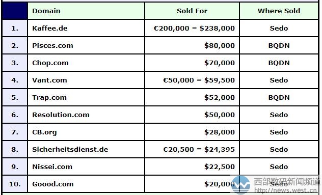 DN榜:“咖啡”域名kaffee.de成目前为止今年最贵国别域名!三五互联(35.com)9月18日消息,本期 DN交易榜(9.4-9.10)上,国别域名异常抢眼,其中德国域名Kaffee.de以238,000美元在sedo平台结拍,约合人民币156万。该域名不仅是本期DN帮上成交价最高的域名,也是今年目前为止卖价最高的国别域名。 域名Kaffee.de从主体到后缀都是一枚地道的德国域名,Kaffee是德语“咖啡”的意思,和英文里的“coffee”同意;后缀.de是德国国家域名,很适合搭建咖啡相关终端。买家是德国一家咖啡分销专家——OPAG GmbH。据悉,域名kaffee.de已经超越今年4月份以100,320美元成交的澳大利亚域名Fetch.com.au,成为目前为止今年DN榜上最贵的国别域名。 排名第二的是pesces.com,成交价为80,000美元,约合人民币52万元。该域名注册于2005年,对应一本西班牙语著作《pesces》。随后域名chop.com,具有“切碎、砍、终止”的意思,目前对应有儿童服装品牌chopchop,官网启用域名chopchop.com.hk。 排名第四的是以50,000欧元成交的域名vant.com,约合人民币39万元。该域名对应有韩国爱茉莉旗下vant美妆品牌,不知道是否会被爱茉莉收购。域名vant.com总共只有4个字符,简短好记,多个领域均可使用,市场潜力不错。 除此以外,字符简短的两字母域名cb.org也以28,000美元榜上有名,对应有“储备、出版、翅膀、城堡、创办”等诸多丰富含义。另一枚长字符的德国域名Sicherheitsdienst.de也超两万美元结拍,具有“帝国保安部”的含义,适合搭建相关政府机构。 除此以外,其他域名也有不错表现,像英文域名resolution.com(解决)、trap.com(全套、陷阱)等域名成交价也不低,交易详见下图: 本文转载自新闻资讯,原文链接:DN榜:“咖啡”域名kaffee.de成目前为止今年最贵国别域名!