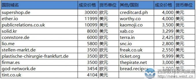 “超级商店”登顶Sedo榜!“印刷”类域名近18万元成交2月28日消息,据外媒报道,新一期的sedo榜上共有71个域名超2000美元成交,其中冠军由国别域名Supershop.de以30,000欧元摘得,四字母ooni.com以35,000美元紧随其后。 先来看国别域名,国别域名中除了.cn就属.de域名zui为给力,sedo榜上也多次曝出.de域名高价成交的消息。本次以30,000欧元,折合人民币超23万元成交的supershop.de就表现不俗,该域名具有“超级商店”的意思,电商含义明显,适合搭建在线商城。在新零售日益升温的形势下,好域名对于传统零售商也具有重要意义。 域名ether.io成交价为11999美元,约合人民币7.6万元,该域名是英属印度洋领地域名,具有“醚、苍穹、太空”的含义,适合化学或太空等领域应用。另外,有“公共关系”之意的域名publicrelations.co.uk以10099美元结拍,该域名虽然字符略长,但含义直观清晰,适合搭建公共关系相关网站平台。 .com域名方面,四字母域名ooni.com以35000美元结拍,约合人民币22万元。该域名字符简短,品相上属于AABC型域名,比较好记好写,目前对应一款网络测量工具ooni probe。 随后是以27,800美元(近18万元)成交的扁担域名digital-printing.com,该域名虽然字符较长,但其“数位印刷”的含义却十分通用。数位印刷是一种以电脑处理为主的印刷,在市场上有着不错的影响力,以此命名的终端也颇多,因此与之对应的域名digital-printing.com应用价值也就不菲。 另外,英文组合域名camtrack.com以26,000美元成交,约合人民币16万元,具有“红外跟踪”,适合搭建旅游、健身等平台;除此此外,“记事簿”memopad.com(1.1万欧元)、“植物的”vegetal.com(9888欧元)、vedp.com(1.2万美元)、buysteel.com(1.2万美元)、operal.com(1.1万美元)等不少域名也都结拍了。 来源新闻资讯:“超级商店”登顶Sedo榜!“印刷”类域名近18万元成交