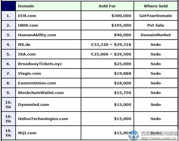 DN榜:多个三字母域名成交!ENN.COM以191万元夺魁5月18日消息,上周的DN榜因故未能发布,本期的DN榜累计了从4月30日到5月13日期间成交的域名。其中,三字母域名EEN.COM以300,000美元通过get your domain平台成交,成功摘得冠军宝座,约合人民币191万元。 域名EEN.COM注册于1998年,距今已有20年历史,是“异常教育需要”(exceptional educational needs)的缩写,也对应有欧洲企业网络(enterprise europe network)的首字母缩写。据了解,域名EEN.COM的所有者为ANYTHING.COM,经由中介完成交易。目前尚不知买家具体身份,但能以近200万元的价格拿下该域名,实力不凡。 随后是以195,000美元成交的域名URW.COM,这枚域名被澳大利亚购物中心巨头Westfield LLC(西田集团)收购,卖家是Telepathy公司,这笔交易的具体金额也在本期DN榜得以公开,高达19.5万美金,折合人民币超124万元。 排在第三的是英文组合域名humanability.com,成交价为40,000美元,约合人民币25.5万元。该域名直译为“人的能力”,可用来搭建人工智能以及公益类网站等。 紧随其后的是两声母域名NX.de,这枚德国国别域名在sedo榜上以39,318美元成交。字母NX对应有雷克萨斯,以及任天堂推出的一款游戏平台。除此以外,NX.de域名可挖掘的含义十分丰富,可应用的空间较广。 除此以外,榜单上也还有不少的好米,如:三字母ixa.com以29,500美元成交;英文域名broadwaytickets.nyc拍出25,000美元,viagio.com、nqi.com、Global.global、Gold24.com、timedia.com等域名均拍出不错价格。 来源三五互联新闻资讯:DN榜:多个三字母域名成交!ENN.COM以191万元夺魁