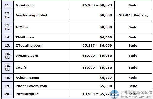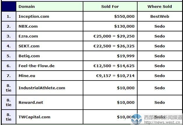 昂贵的“开端”:英文域名inception以366万元居DN榜首7月13日消息,新一期的DN域名交易榜昨天出炉,本期榜单上超六位数美金成交的域名有两枚,分别是inception.com(550,000美元)和NBX.COM(130,000美元)。 域名inception.com注册于2002年7月,已通过Bestweb平台完成交易,成交价为550,000美元,折合人民币366万元。该域名是英文“开始,开端,初期”的意思,是比较常用的英文词汇,由于没有特定的行业倾向性,适合多个领域建站使用。目前,与之对应的有电影《盗梦空间》(inception)和网络模型Inception。 随后是刚在sedo交易榜上位居首位的域名NBX.COM,成交价折合人民币为87万元。这个三声母域名注册于1995年,可挖掘的含义较大,不过比较引人注目的还是其含有“牛逼、牛币”的意思,前者是网络热词,后者更是对应当前火热的虚拟货币领域,其市场价值也就不言而喻了。 接着是两枚四字母域名ezra.com和sekt.com,成交价分别为25,000欧元和22,500欧元。前者在英文中是人名“埃兹拉”的意思,与之对应的终端有斯拉控股集团(Ezra Holdings),其官网启用域名ezraholdings.com;后者对应有德国葡萄酒里的“塞克特”起泡酒,作为酒类词汇,“sekt”在行业内较为通用,适合搭建相关起泡酒网站平台。另外,以19,999美元成交的betiq.com也值得关注,折合人民币超13万元。 除此以外,本期DN榜上两枚国别域名跻身前10,分别是德国域名feel-the-flow.de和欧盟域名mine.eu,成交价分别为12,500欧元和9,157欧元。其中,feel-the-flow.de直译为“感受气流”;域名mine.eu主体是非常通用的英文单词,有“矿井、地雷、我的”等意思。 其他域名交易情况,详见榜单: 来源三五互联新闻资讯,原文链接:昂贵的“开端”:英文域名inception以366万元居DN榜首