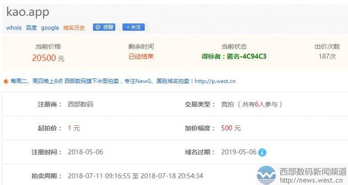 单拼域名kao.app在三五互联五位数结拍!7月20日消息,.app域名自开放注册以来,其受关注的程度一直居高不下,相关域名交易案例也时常传出。据三五互联最近成交记录显示,多枚.app域名完成交易,其中单拼域名kao.app以20,500元竞拍,双拼域名haoqing.app则以10,000元一口价被秒。 域名kao.app对应有“考、烤、靠”等词义,从含义上看,比较适合搭建题库考试类应用、烧烤美食类平台。品相上,kao.app又是很符合国内用户使用习惯的单拼域名,无论是输写还是传播都很有优势。所以,整体而言,域名kao.app市场价值颇为不错。 据搜索发现,目前与域名kao.app对应的知名终端有日本日用品品牌花王,其官网域名为kao.com。除此以外,国内一家名为KAO铺快餐的互联网O2O连锁品牌也与之对应,官网域名为ilovekao.com;另外考驾照的用户都会用到的驾考宝典也用了域名jiakao.com….这些终端案例也侧面说明了域名kao.app有着不错的应用空间。 除了kao.app以外,双拼域名haoqing.app也在三五互联被秒。该域名有“豪情、壕请、郝庆”等含义,与之对应的有经典电影《豪情》。就含义而言,域名haoqing.com可用于搭建婚恋交友网站、活动策划网站等。 除此以外,单拼域名nao.app以2500元成交,对应有“脑、闹”等含义;三声母域名dhb.app(大红包、大汉堡)、djb.app(单肩包、大煎饼)以及huangque.app(黄雀)等域名一口价被秒! 来源三五互联新闻资讯,原文链接:单拼域名kao.app在三五互联五位数结拍!