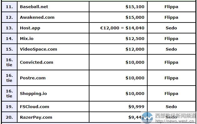其他更多域名交易情况,详见下表: