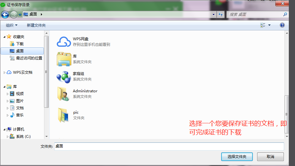 9、点击下一步之后弹出一个,让您保存文档的界面,选择您要保存的文件夹,即可完成证书的下载,您可以在文档里面查看到自己的证书 注意:务必先新建好文档之后可以把下载的正式放置在文件夹中以免丢失