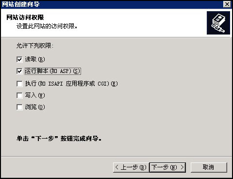 网站访问权限,一般勾选前两个,如图: 这时站点已经建立好了,但是您可能打开还会显示两种错误: