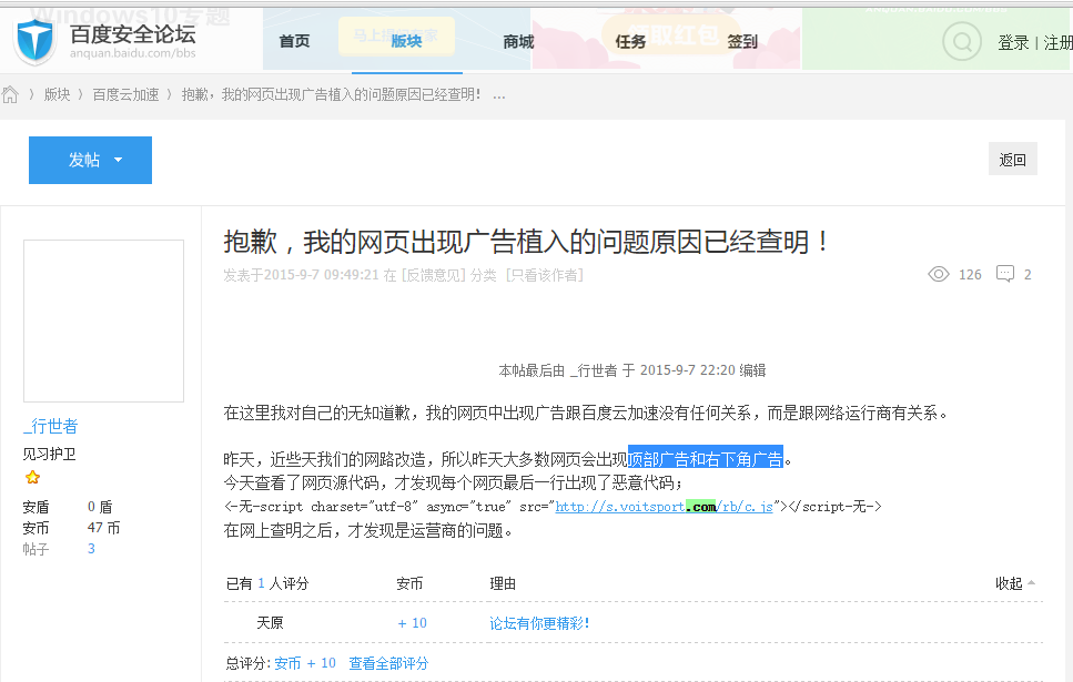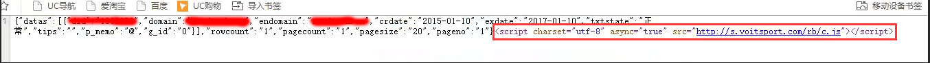 关于域名管理栏目无法无法访问,访问报错的解决方法近来有不少用户反馈,打不开我们新版的域名管理页面 经过我们开发部与运维部的仔细研究排查,发现该问题是由用户本地上网的网络被植入广告所造成的. 一般情况下,http://www.35.com/manager/domain/ 页面以及数据文件页面 http://www.35.com/manager/domain/do.asp 会被插入一段非我司代码的js文件.如下图: 这个被植入的广告导致网页程序不能正确解析数据文件,所以会出现类似错误. 在百度上搜索这段代码发现中招的用户不在少数,以下是来自百度安全论坛的截图 京东也有中招 这个代码是用户上网的网络植入的广告.目前唯一的的解决方法如下: 拨打您网络服务商的客服电话,让他们取消您的push广告. 亲测有效 该广告不经过用户许可直接在路由中植入,非常隐蔽.一般用户会误认为自己电脑中毒或浏览器被劫持.