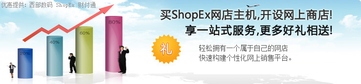 ShopEx网店主机是我司做为国内著名网店系统开发商ShopEx金牌合作伙伴向广大电子商务客户推出的新一代网店系统。使您轻松拥有一个属于自己的网店。帮助企业及个人为开展电子商务而快速构建个性化网上销售平台。 |